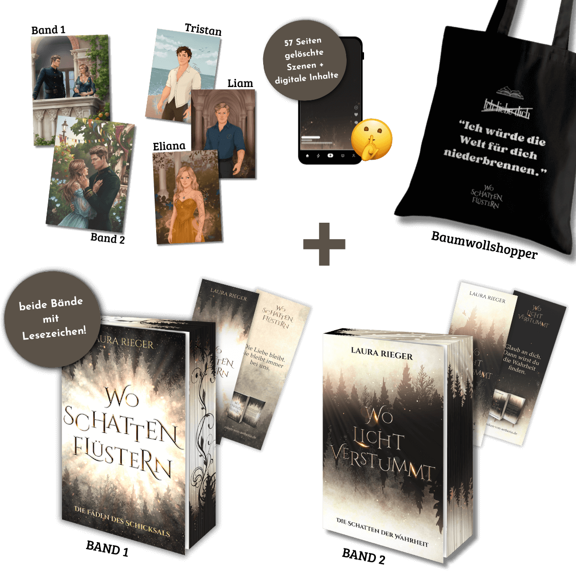 Tauche ein in die Welt von „Wo Schatten flüstern“ & „Wo Licht verstummt“ – zwei Bände voller Magie, Liebe und Schicksal. Diese exklusive Box ist für alle, die Geschichten nicht nur lesen, sondern fühlen wollen.
